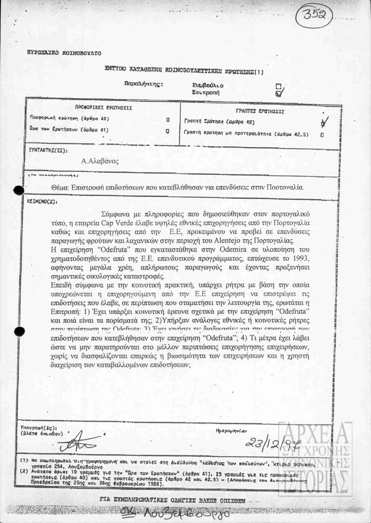 Ταυτότητα Τεκμηρίου: ΑΣΚΙ~ΑΡΧΕΙΑ ΕΥΡΩΒΟΥΛΕΥΤΩΝ~ΑΡΧΕΙΟ ΑΛΑΒΑΝΟΥ~Κοινοβουλευτική δραστηριότητα~01. Γραπτές-προφορικές ερωτήσεις (με/χωρίς απάντηση)~1997~00644