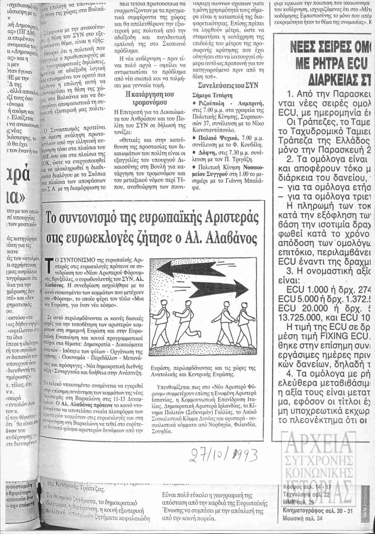 Ταυτότητα Τεκμηρίου: ~ΑΣΚΙ~ΑΡΧΕΙΑ ΕΥΡΩΒΟΥΛΕΥΤΩΝ~ΑΡΧΕΙΟ ΑΛΑΒΑΝΟΥ~Εφημερίδα, Η Αυγή~1993~00273